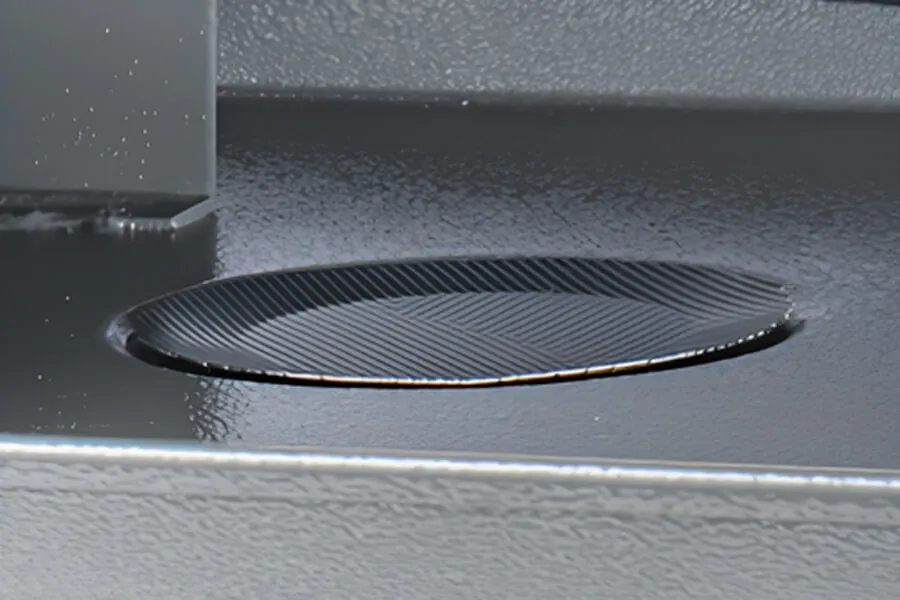 Integrated design helps you find details that contribute to the continuous improvement process for OEM metal cutting bandsaws. Our previous design had a thin, recessed coolant fluid coarse filter mesh screen built into the sump under the bandsaw. You can see this in the picture above. This design tended to trap metal chips and was sometimes damaged when removed for cleaning because it was a snap-fit that had to be gently pried free from the sump.